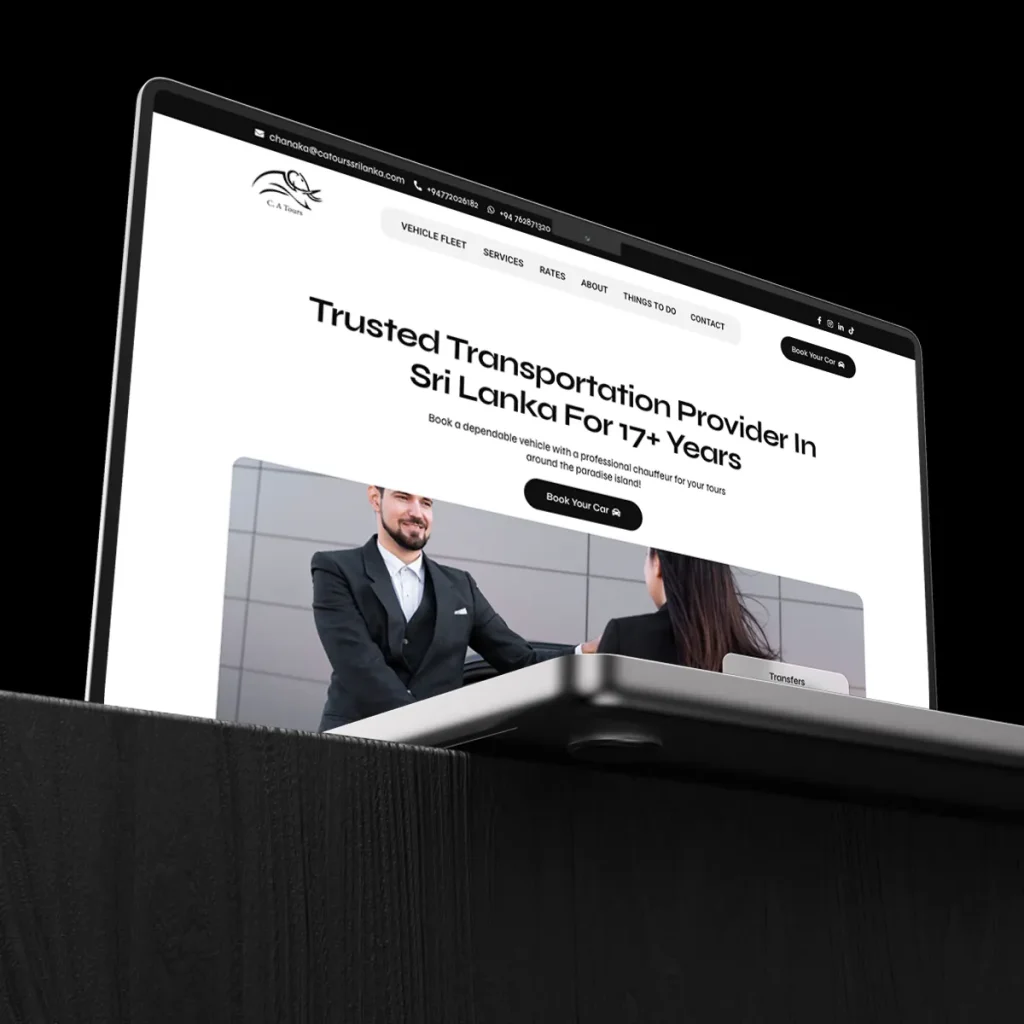 Ladder Global partnered with C.A Tours, a leading transportation service provider for tourists in Sri Lanka with over 17 years of industry experience. The project involved developing a professional and user-friendly website that showcases their vehicle rental services and trusted chauffeur offerings. In addition to web development, our team handled social media management and executed targeted paid ad campaigns to increase brand awareness, drive inquiries, and position C.A Tours as a go-to choice for reliable tourist transportation in Sri Lanka.