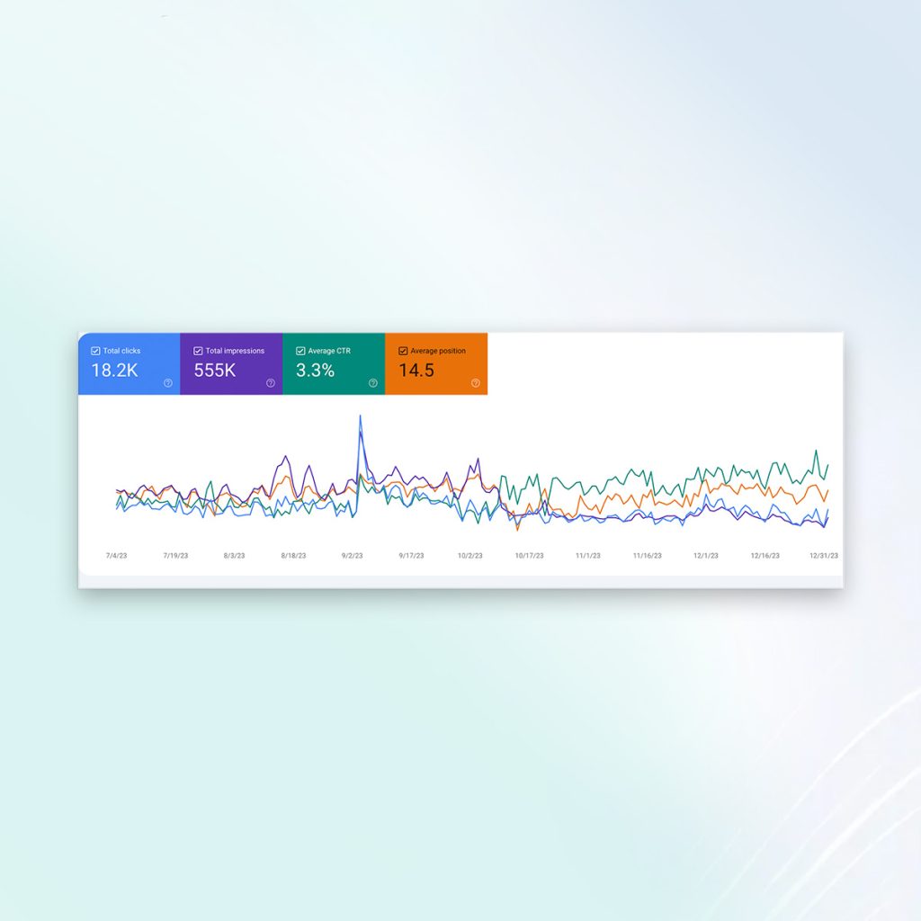 • 14.5 average position on Search Engine Results Pages (SERP), indicating improved visibility.