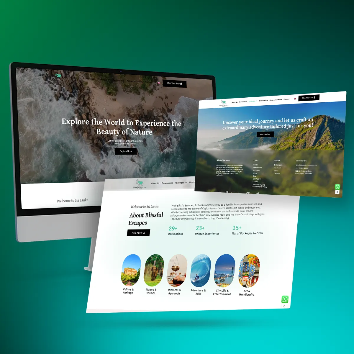 Ladder Global partnered with Blissful Escape to create a visually compelling and user-friendly website tailored for inbound tourism in Sri Lanka. The new site allows tourists to explore tour packages, destinations, accommodations, and travel experiences while submitting inquiries directly online. This case study showcases how our focused web development services helped a growing travel agency build trust and convert interest into bookings.