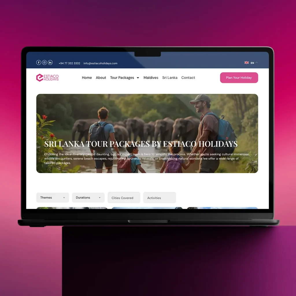 Ladder Global worked with Estiaco Holidays to design and develop a professional, user-friendly website that reflects the quality and range of their travel services across Sri Lanka and the Maldives. The main focus was to create an engaging online platform where visitors could easily explore tour packages, learn about destinations, and connect directly with the team through inquiry forms. With clear navigation, responsive design, and visually appealing content, the website helps build credibility and gives travelers the confidence to plan their next adventure with Estiaco Holidays.